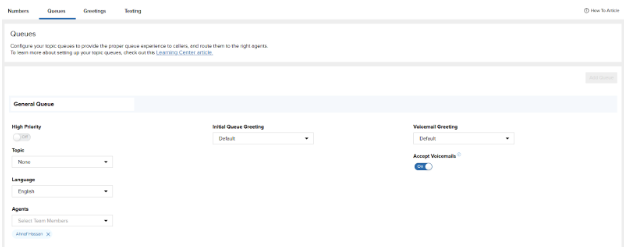 A queue is a location where you can route phone calls to ensure that calls are assigned to the right topic and agents and also that callers have the right experience (with the right greetings). You can now configure queues separately from phone numbers to allow for more advanced call routing capabilities. Here’s how to streamline your queue topics, assign agents, and customize other settings: