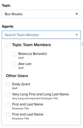 Assign a topic to calls in the queue. Select agents who will handle those calls, including both topic team members and additional agents from outside the team.