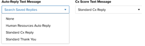 Select a Cx Text Message from your list of Saved Replies for gathering feedback for calls, texts, inbound, and outbound calls from this number.