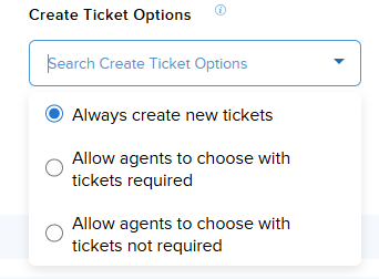 You can select an option agents associate phone calls with tickets by enabling one of the following selections from the drop-down menu: