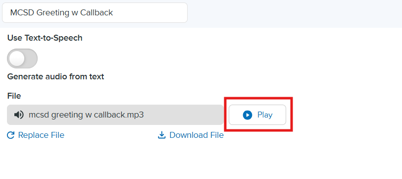 To ensure that audio greetings are accurate and contain all necessary information you can preview the greeting. To preview the greeting click the Play button and you will be able to listen to the greeting.