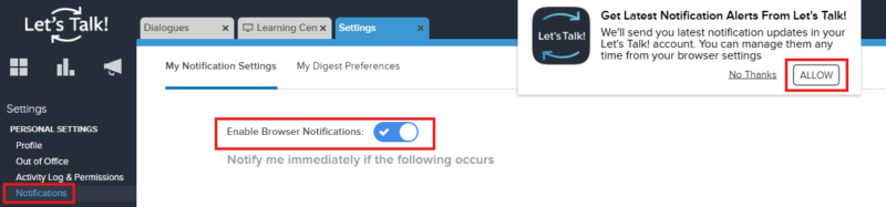Have you ever been on a browser window or tab other than Onflo (formerly Let's Talk!) and missed seeing your incoming calls? Now you can enable browser notifications for incoming calls, allowing you to respond quickly.