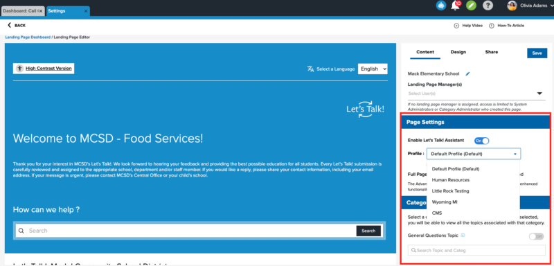 - You will see the Profile drop-down menu where you can select which profile appears on this Landing Page.