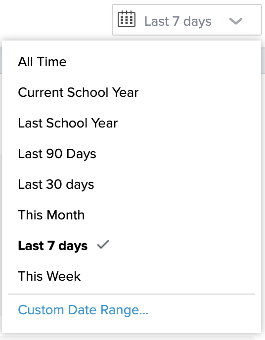 Like all other dashboards in Onflo, at the top right-hand corner of the report, you can find the date filter. This filter will change your data to only reflect the time period you select. Choose from any of the preset date ranges or click on Custom Date Range to create your own.