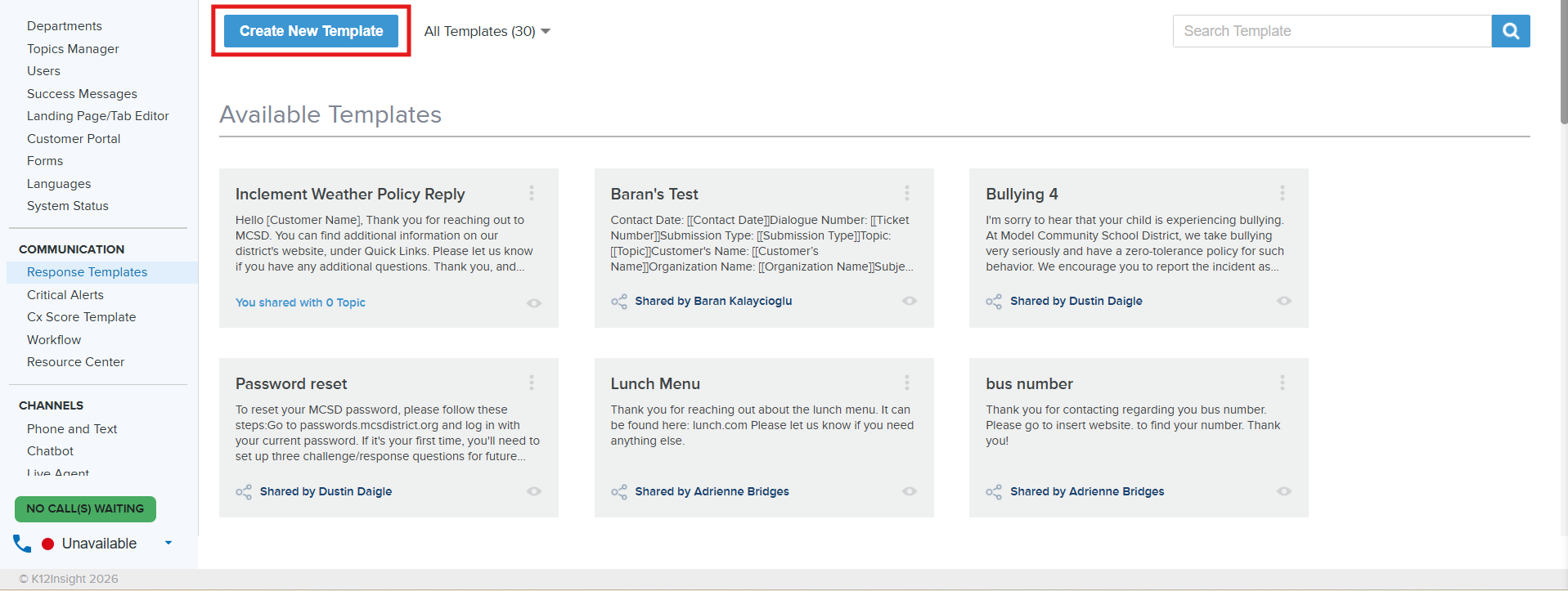 Aside from the Templates you create, you are also able to see Templates shared with you. If you are a System Administrator, you can view All Templates within the account.