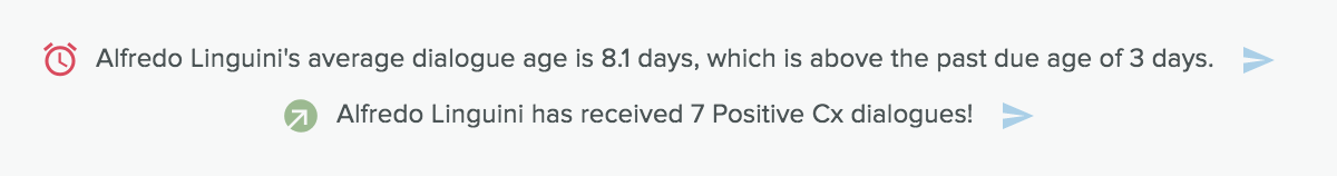 - Specific Users/Topics: When you drill down, you will find statement sentences at the bottom of the expanded view. These statements will tell you recent summaries of the users or topics. Click on the paper plane icon to notify the user based on that statement.