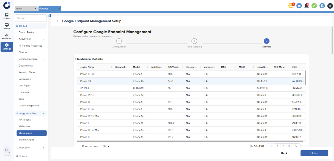 Synchronize Chromebook and Chrome OS device inventory from Google Endpoint Management into Onflo. Maintain visibility over your district's Google-managed devices with automated inventory updates and device status tracking.