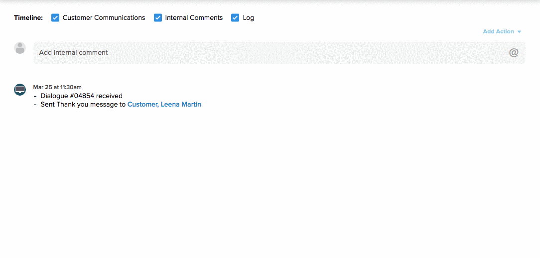 • To add an internal comment, click on the text box that is labeled "Add internal comment" in the timeline.