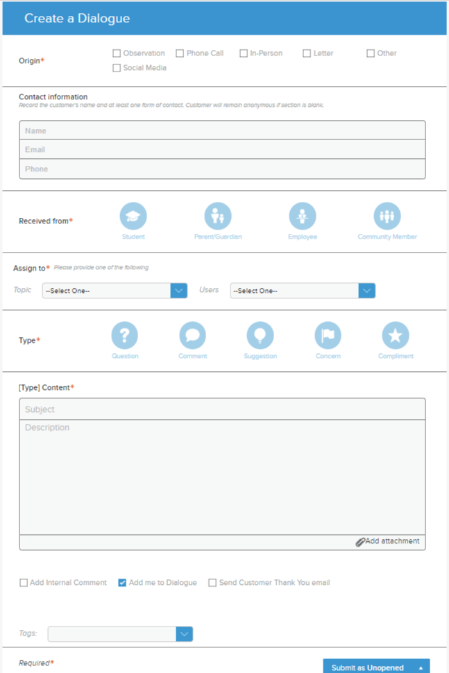 - Add the User recording the message to the Ticket. This option is pre-selected by default, and allows the User to track the progress of the Ticket as needed.