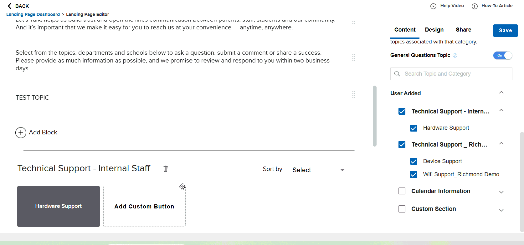 Do you need to create a Custom Topic for your Landing Page? Now System Admins can do so from the Landing Page/Tab Editor within Settings.