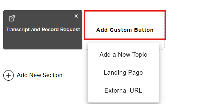 After selecting a Landing Page where the Custom Topic will live, click on the “Add Custom Button” option.