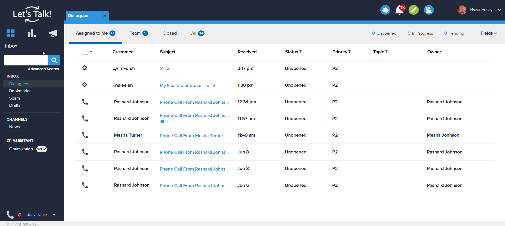 Priority - Limit your search to display Tickets assigned a certain priority. Priorities can be Critical, P1, P2, P3, or No Priority Assigned. Multiple priorities can be selected.