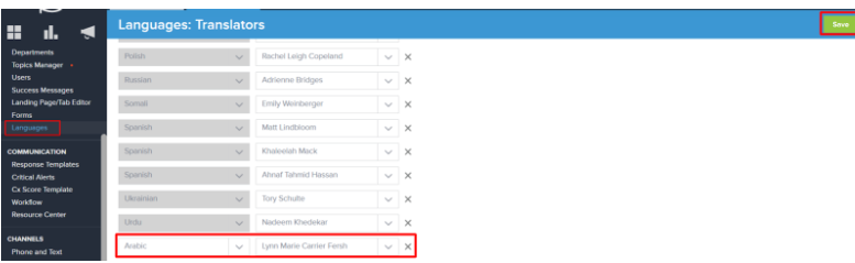 Now that you have assigned translators you will also need to enable languages in Onflo Chatbot