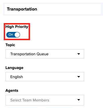 Toggle on the High Priority option within queue settings to have these calls answered before queues that do not have this option turned on.
