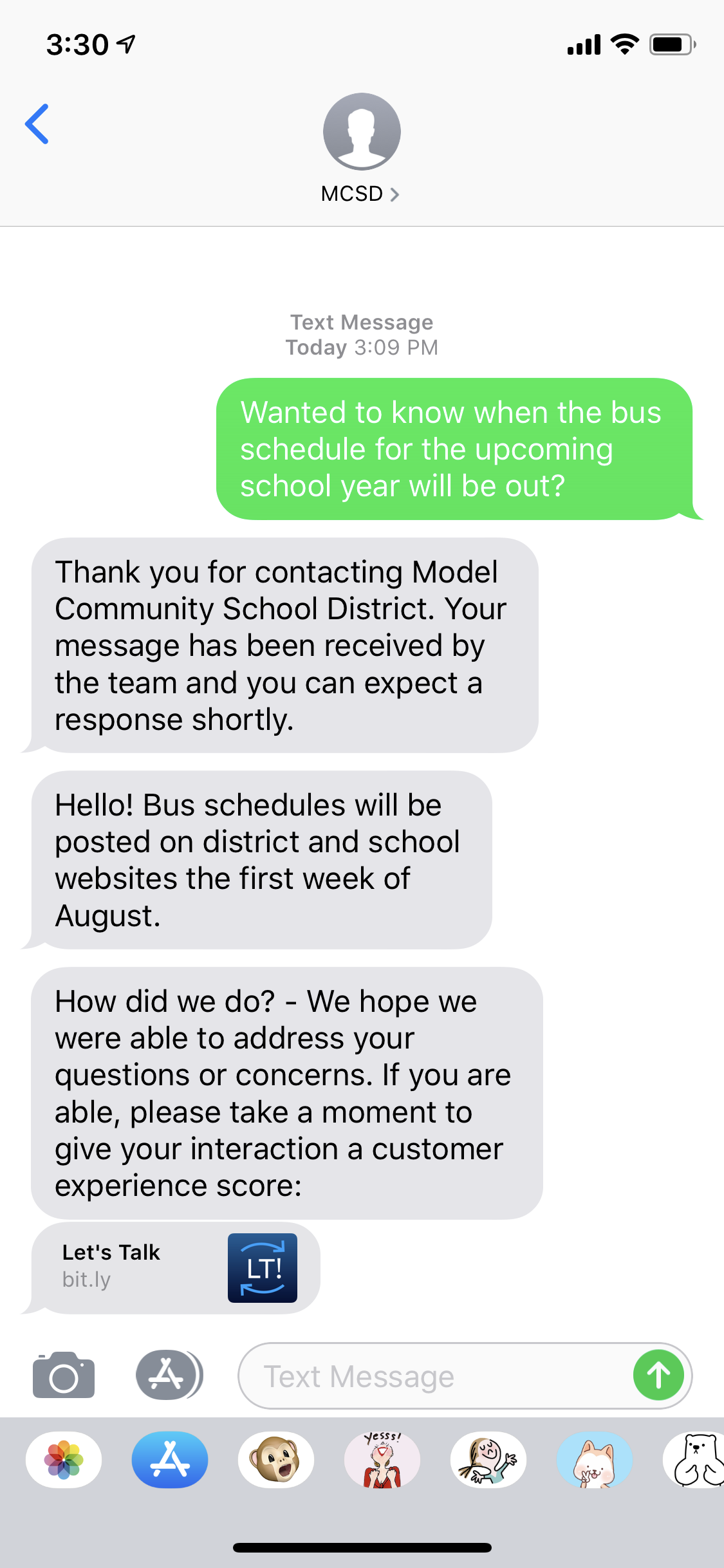 Allow your district community to be able to text their questions, concerns, or comments to a number provided by Onflo (formerly Let’s Talk) The system then instantly turns that message into a ticket.