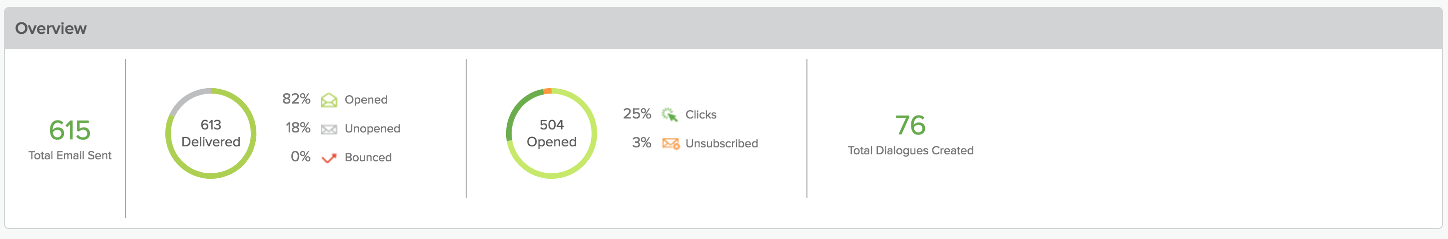 Click Campaign Dashboard, then scroll down to see Overview, followed by each campaign and its relevant statistics.