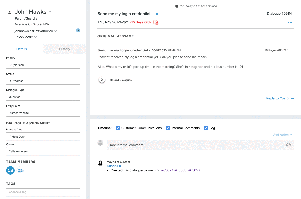 Sometimes customers might refer to previous requests, questions, or interactions they’ve had with your district when they submit a ticket, and in some cases, being able to see that history can better help you understand and serve their needs.