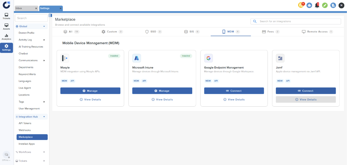 Step 1: Click on Connect on the Jamf App in the MDM section of the Integration Marketplace