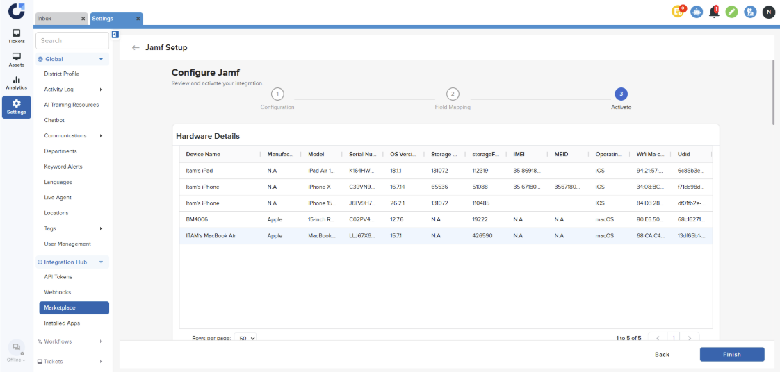 Synchronize your Apple device inventory from Jamf Pro directly into Onflo's asset management system. Maintain accurate, up-to-date records for Mac, iPad, iPhone, and Apple TV devices without manual data entry.