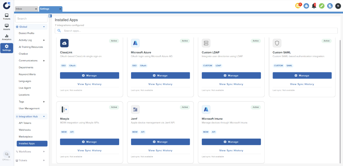 Integrate Microsoft Intune to synchronize Windows and cross-platform device inventory with Onflo. Track managed devices across your district with automated syncs that capture hardware details, compliance status, and enrollment information.