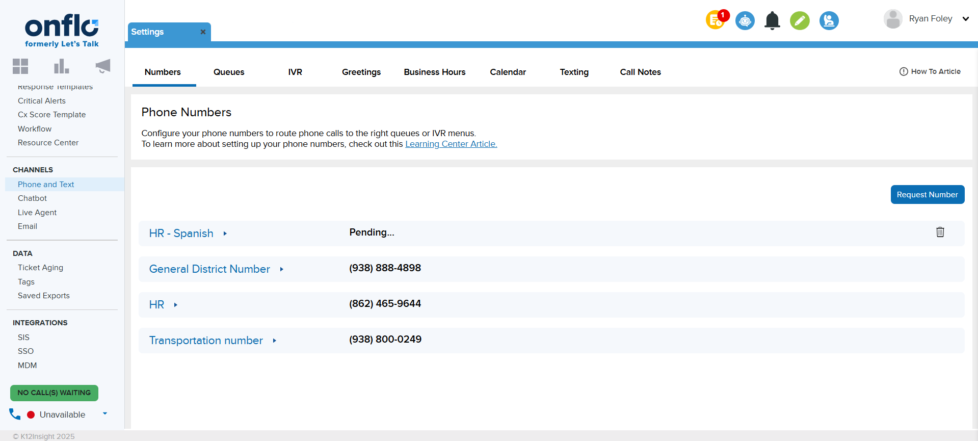 IVR Settings in Onflo