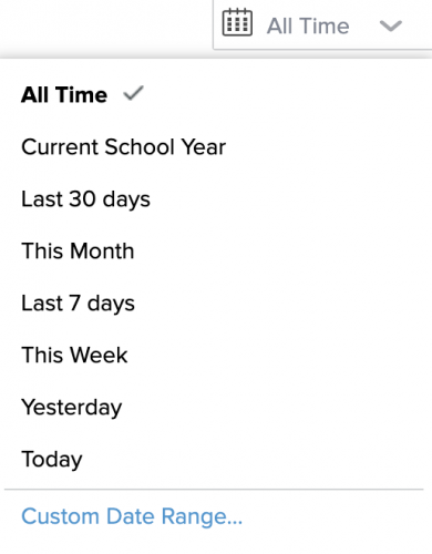 To view chats from all time, or from a specific Date range, click on the calendar icon in the top right of the screen. It defaults to “Today.”