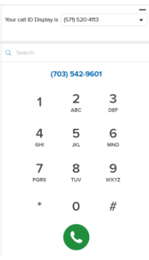 3. The dial pad will populate on your screen. From here you can choose which number (if you have multiple options) will appear on the recipients caller ID, then begin to type in the number on the dial pad, or search for the number