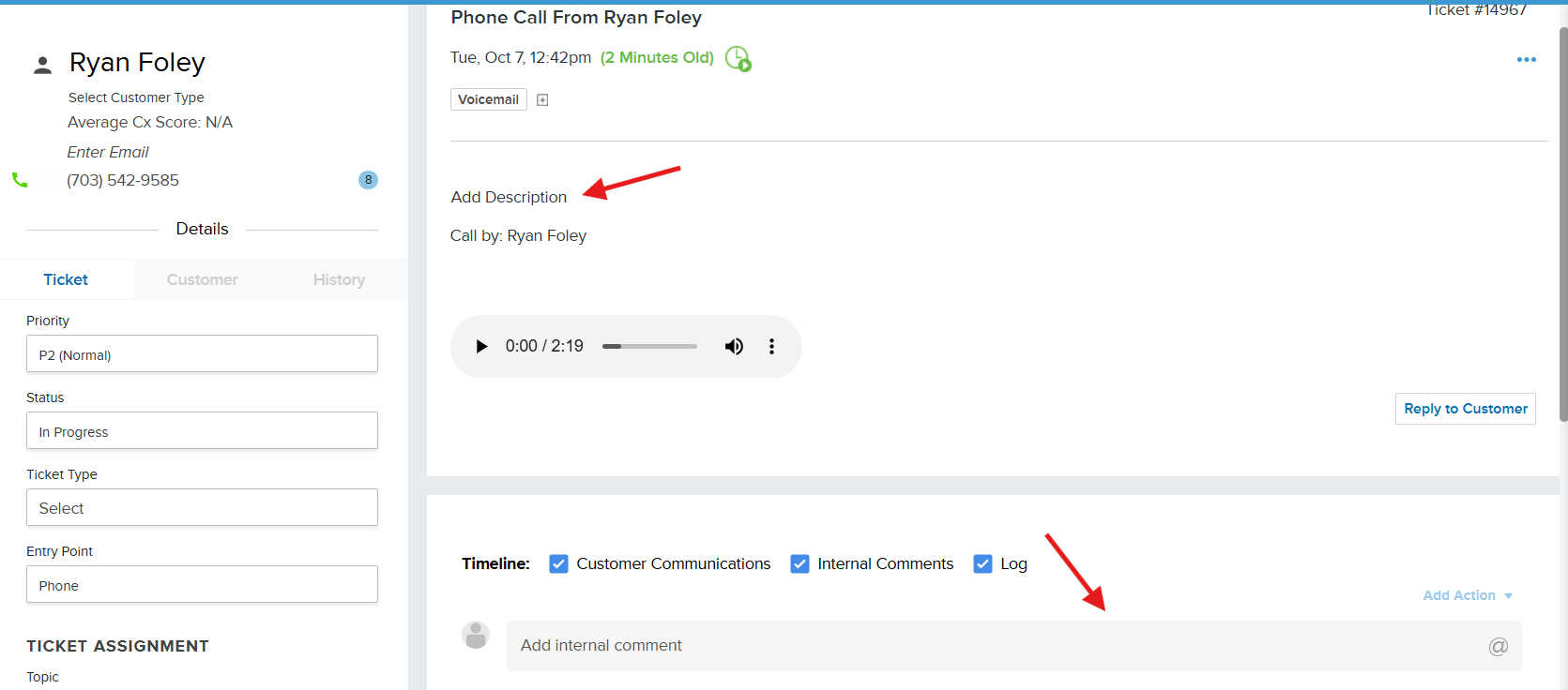 Note: A Topic does need to be assigned to this ticket before you can call the customer directly.