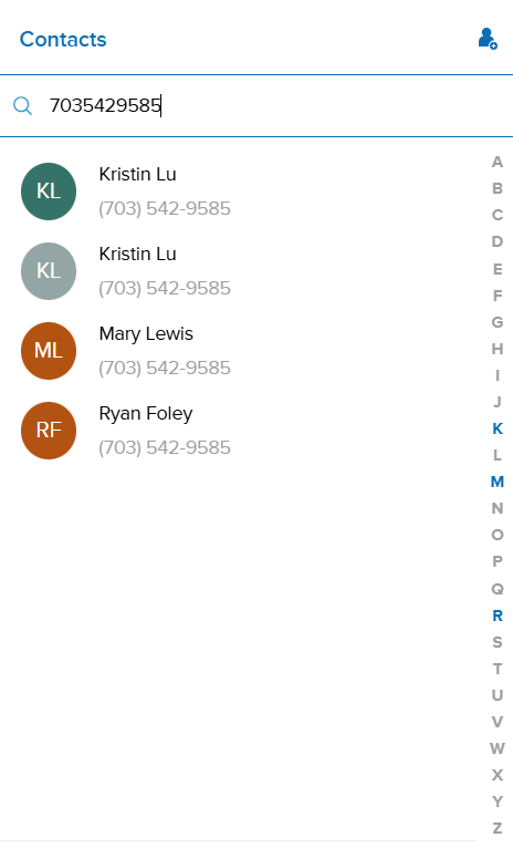 Once you have chosen to make a call you can locate contacts within the Contact Book feature within the call panel. To access the contact book you can type the name or number of the contact in the field within the call panel, or click the icon to search contacts (both saved contacts and prior received calls)