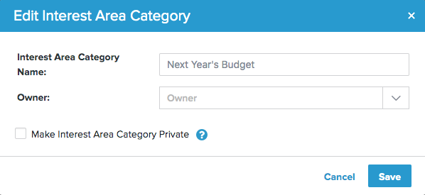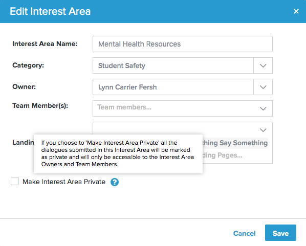 Interest Areas can be set to private to prevent irrelevant members from accessing data from the Interest Area. When an Interest Area is set to Private, only the following users will have access to the Interest Area: